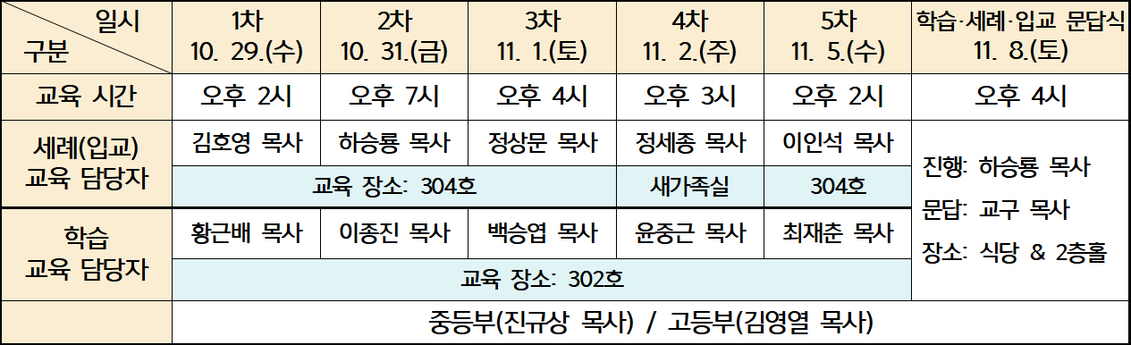 ③ 입교 대상: 유아세례 받은 자(만 14세 이상).
